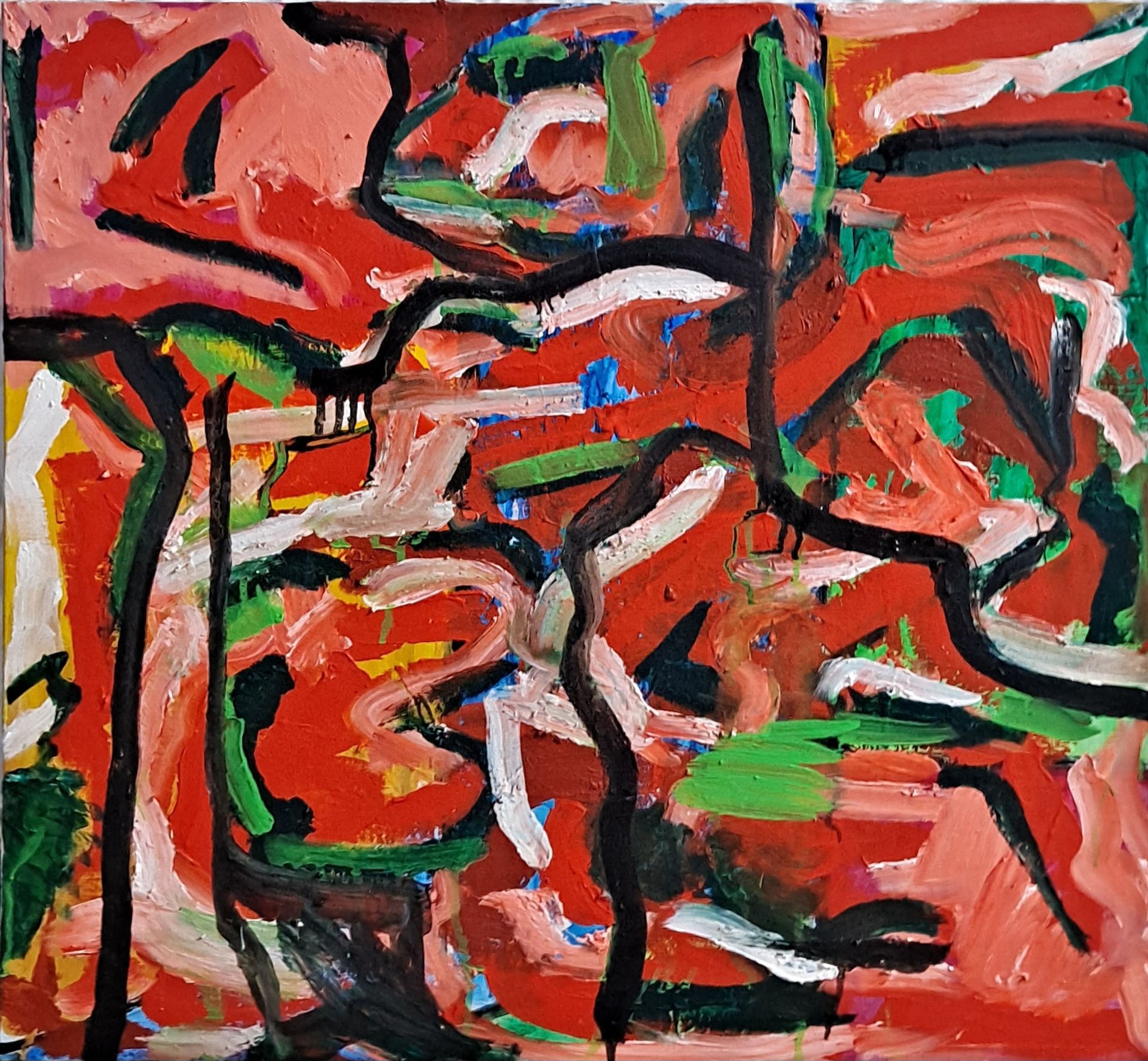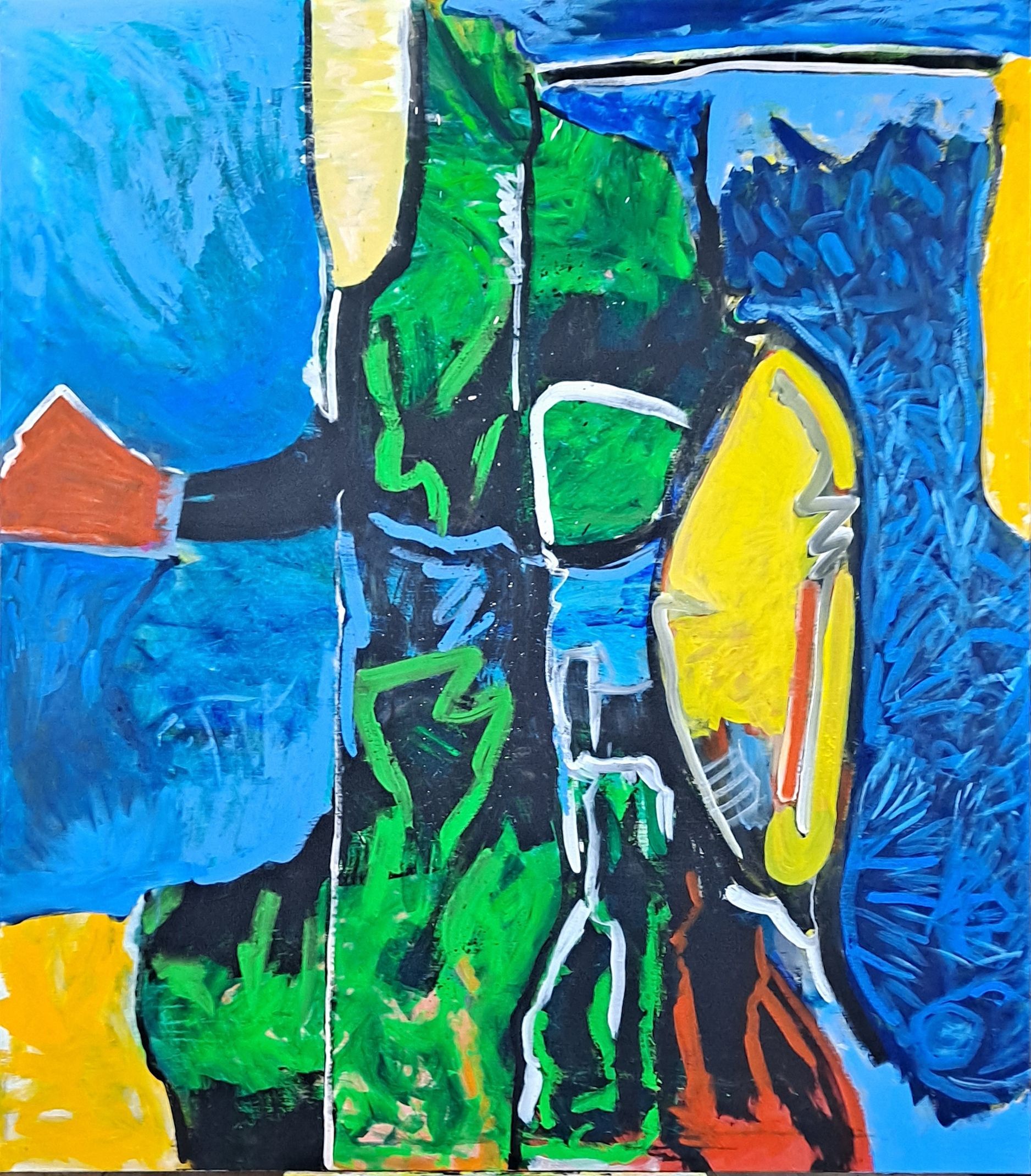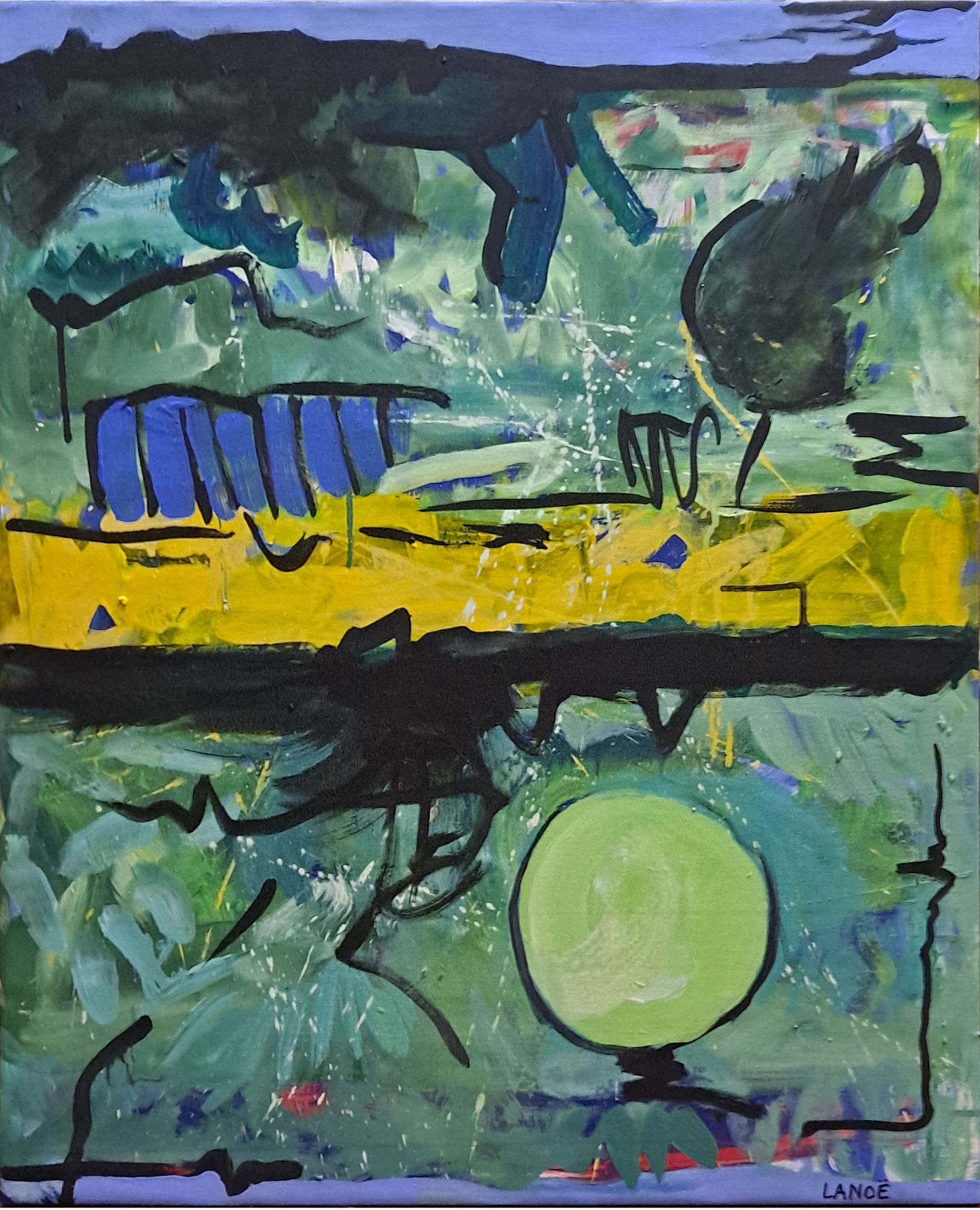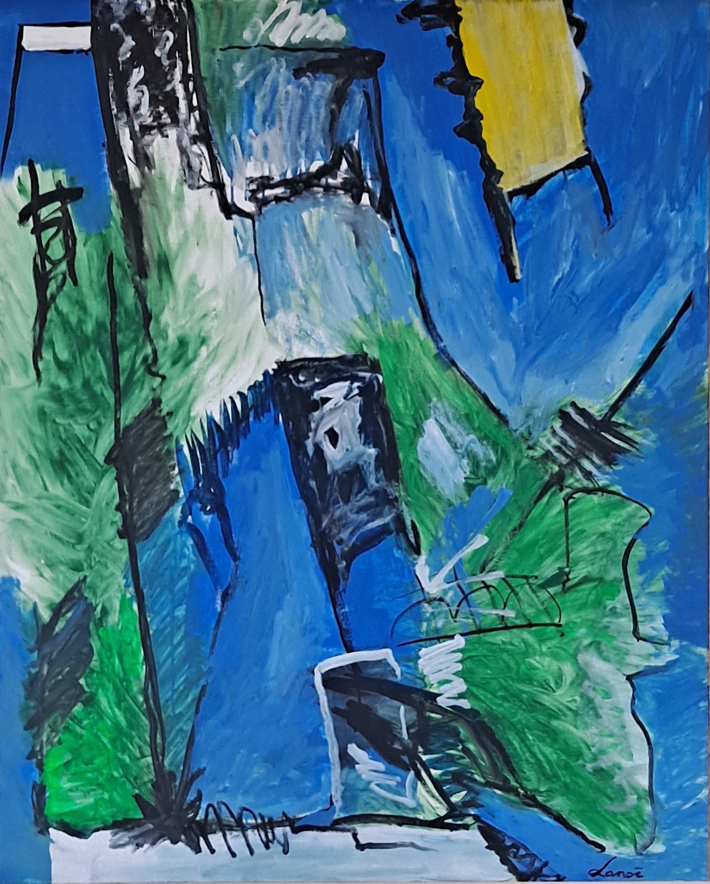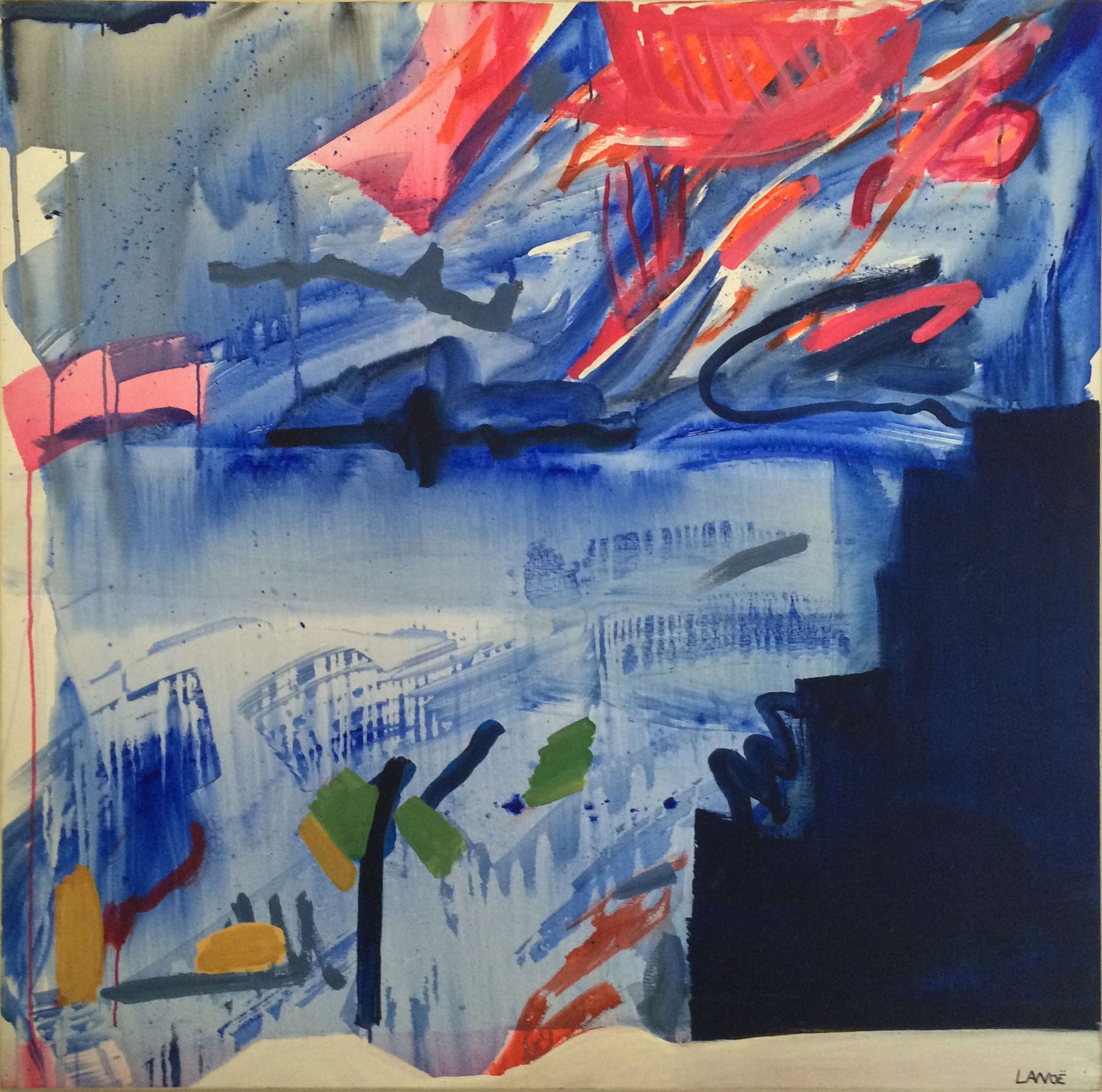Mon œuvre se construit sur les unités constitutives de la peinture que sont la ligne et la couleur. Cette antinomie inhérente à la pratique de la peinture se trouve d'une certaine façon oblitérée en cours de route pendant que le tableau prend corps. je mets à l'étude les effets produits par la ligne et ceux produits par la couleur. Les lignes se brisent et fragmentent la surface de la toile tandis que l'action des couleurs qui se superposent à d'autres réduisent la monochromie. Ainsi les couleurs vibrent. Elles changent de lumière tout au long du regard de l'observateur. Le tableau vit.